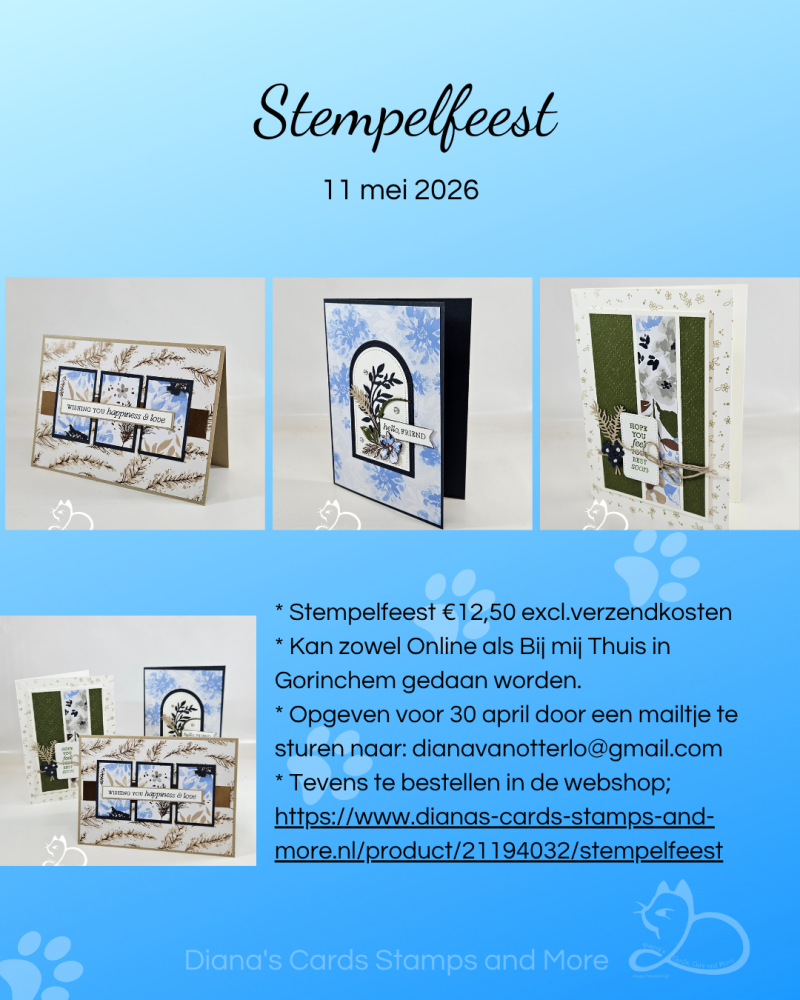 In april is het stempelfeest en de workshop uitgesteld MAAR dat betekent dat je je nu alsnog op kunt geven voor het stempelfeest en de workshop omdat van uitstel geen afstel komt! Ik heb het namelijk verzet naar mei